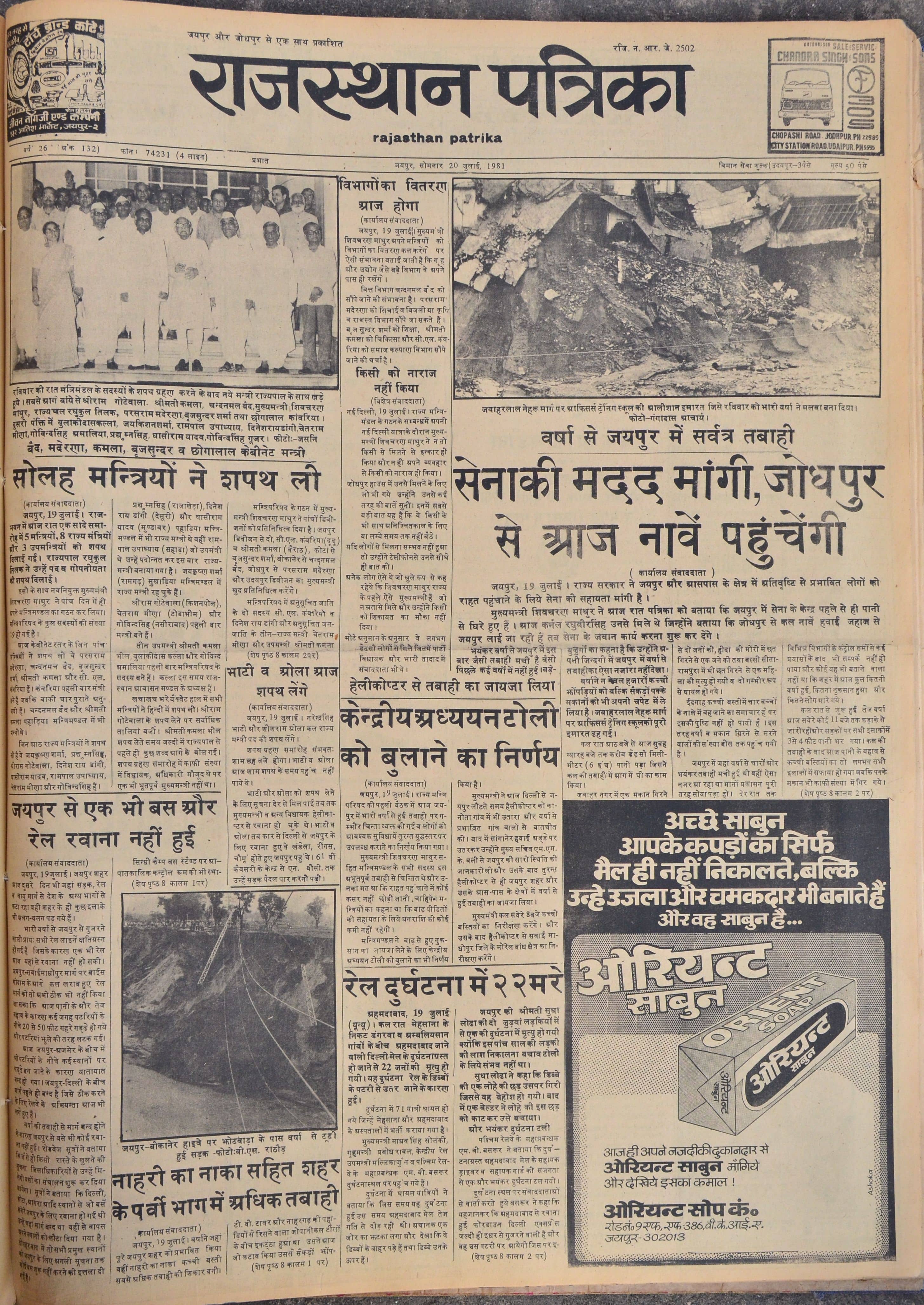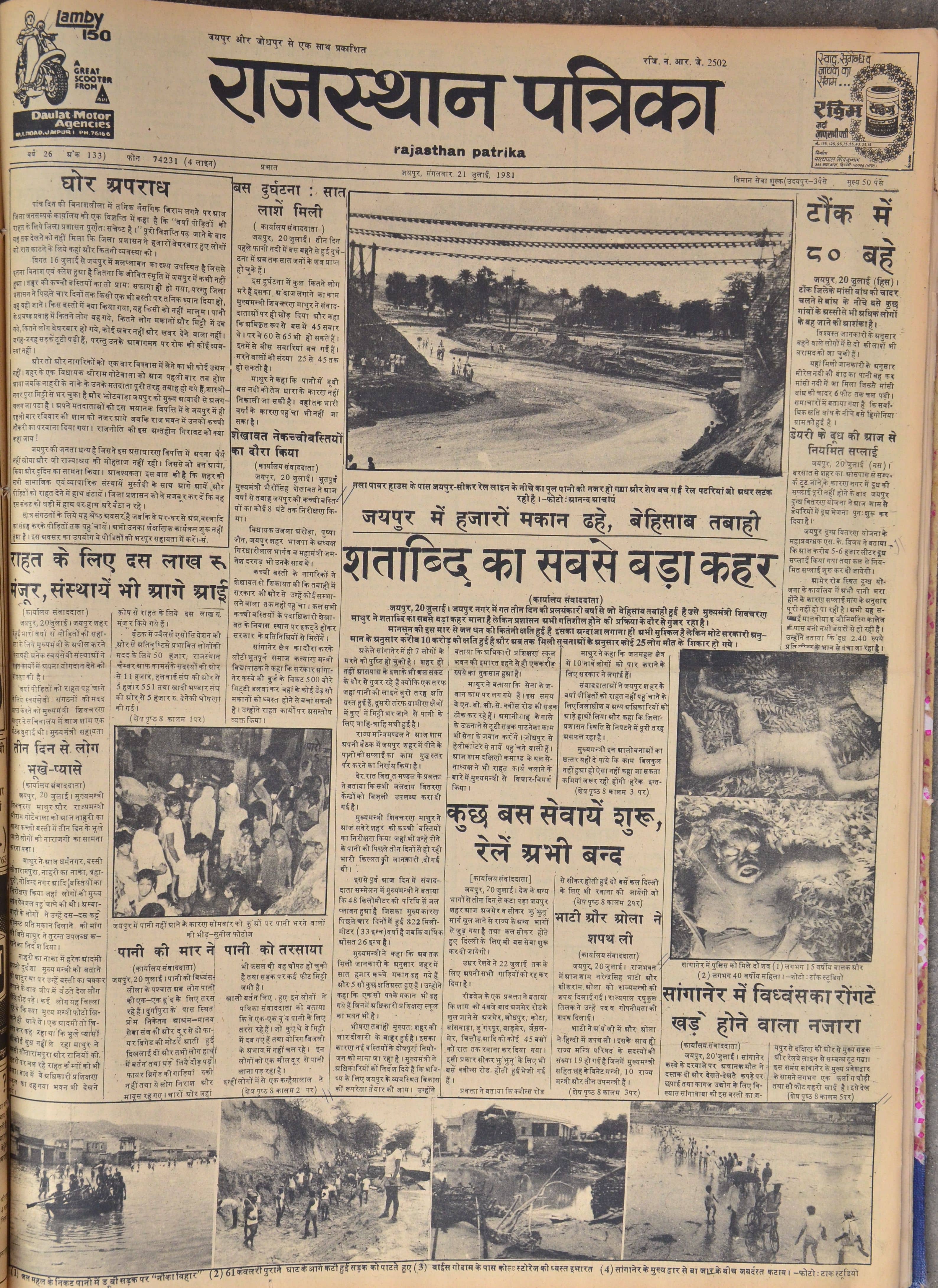- Rajasthan Patrika (Jodhpur) was awarded the first prize as a printer on printing and decoration by the Ministry of Information and Broadcasting, Government of India for the year 1981.